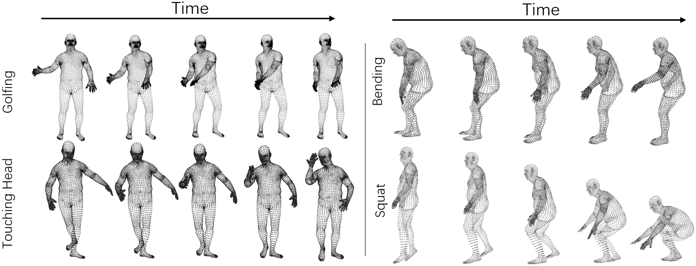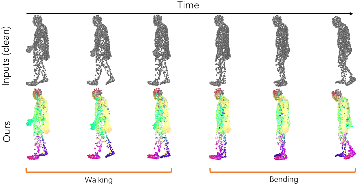 find dense correspondences in a sequence of time-varying 3D shapes. Despite deep learning approaches have achieved promising performance for