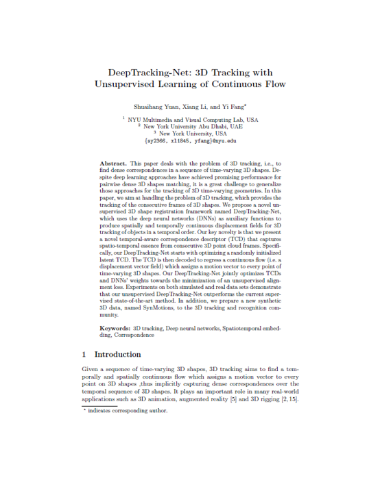 tracking of the consecutive frames of 3D shapes. We propose a novel unsupervised 3D shape registration framework named DeepTracking-Net,